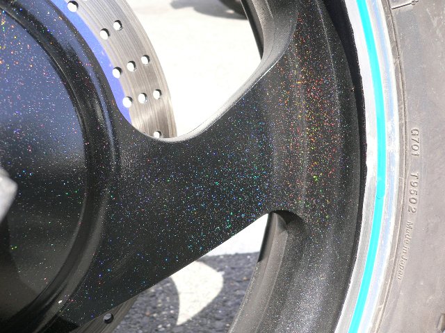 誰も待ってないけどね~`;:゙;`;・(゚ε゚ )ブッ!! 気を取り直して… それでは、塗ったエリミを公開しますw ↓↓ ま、塗ったって、ホイールだけですがね( ̄ー ̄)ニヤリ しかし、アンダーカウルが痛々しい…w もちろんリアも。 晴れた日はラメが淫靡にきらめきます(*´Д`)ハァハァ 所詮は素人の塗装なので、ムラムラです(;´Д`) 決して近くで見つめないでください(´ε`;)ウーン…